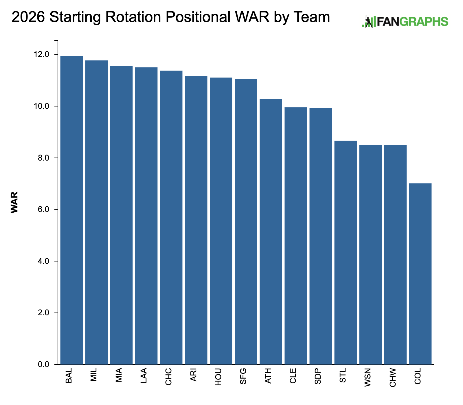 Many of the best teams in the game have solved that issue by building a rotation in two parts. At the top, you’ve got your elite starters, as many as you can get. The top four teams in our rankings have all gone out and proactively added aces in recent years, whether they had some homegrown ones to start with or not. These are the guys who, health willing, have guaranteed spots in a potential playoff rotation.