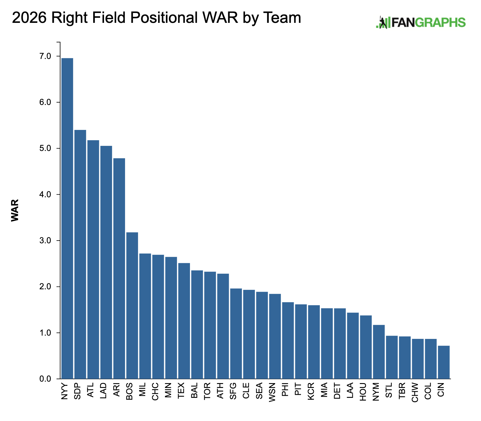 As with the league’s first basemen, right fielders as a group are at a comparatively low ebb when it comes to their offensive production. And likewise, the 2026 projection for one right fielder dwarfs the rest of the field, not that there isn’t a small handful of others who are pretty damn good.