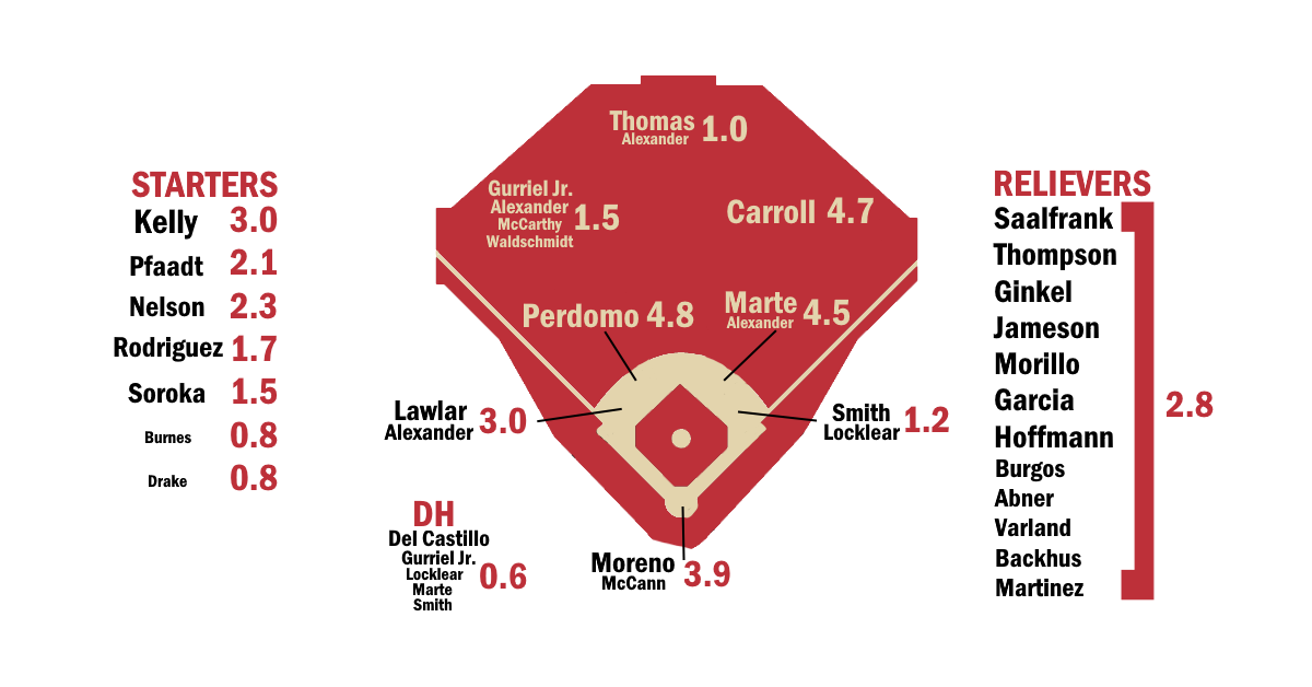 | Merrill Kelly | .245 | .309 | .415 | .247 | .290 | .409 | 3.4 | 1.4 | 3.17 | 4.42 |