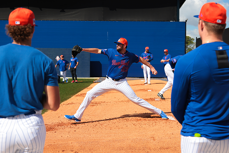 For starters, someone was talking in the background the whole time. It might have been a radio. It was 55 degrees and sunny in Port St. Lucie. The mound at a spring training facility is more of a berm than anything else, one extra-wide pitcher’s mound that stretches for yards and yards. The one in Port St. Lucie is wide enough to accommodate either five or six pitching rubbers.