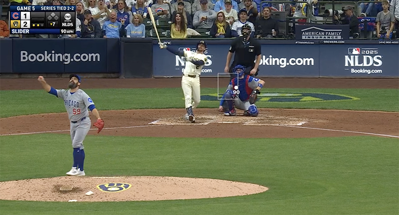 Chicago’s only real threat came in the top of the sixth, when Murphy replaced Misiorowski with lefty Aaron Ashby. It made sense from a platoon standpoint, as the Cubs had the top of their lineup coming to the plate, which included lefties Michael Busch and Tucker. Still, it was a questionable move. Ashby had pitched in three of the first four games, going 4 1/3 innings and allowing four runs, three of them earned. Moreover, the top of the Chicago lineup had already had two chances to get familiar with him. Things immediately went sideways. Busch sent a grounder up the middle for a single, then Ashby hit Nico Hoerner, putting runners on first and second with no outs. Ashby struck out Tucker, and that was the end of his night. Murphy was never going to let him face the right-handed Suzuki, who had already taken him deep in Game 2. Chad Patrick, who had held the Cubs scoreless in his own three appearances in the series, continued his dominance. He retired Suzuki on a deep fly ball, then froze Happ with a perfectly placed cutter on the outside corner for the third out. The Cubs would only reach base once more in the final three innings. Meanwhile, the Brewers were about to add on.