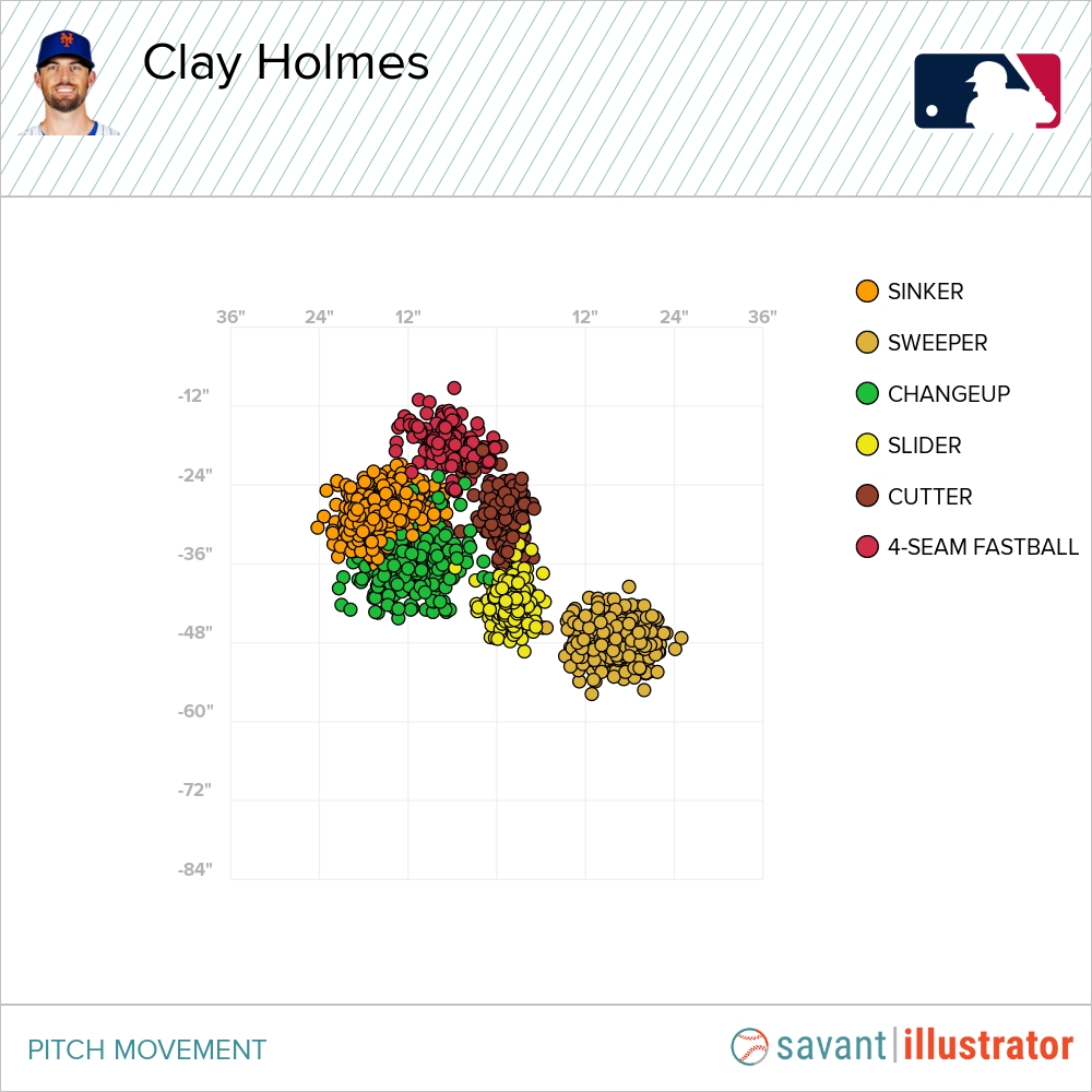 As a starter, Holmes has added a variety of other pitches — a changeup to get lefties out, a cutter, even a four-seamer — but again, it’s still a lot of horizontal movement variation: