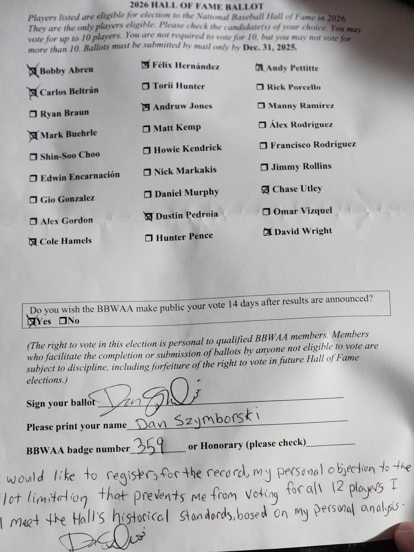 Anyway, you’ll notice that I voted for the maximum 10 players, and from the signing statement, you’ll see that I would have voted for 12 players if given the opportunity. In recent years, the BBWAA has issued proposals to the Hall of Fame to expand the number of players we’re allowed to vote for and to make all ballots public, but those requests have been turned down.