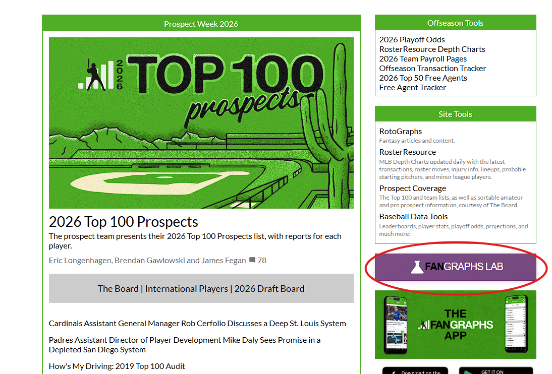 Today, we are proud to announce a new site feature: The FanGraphs Lab. The Lab is a collaboration between the editorial team and the engineering team here at the site, a joint effort to create more ways to sort through and visualize the huge crush of data that pervades baseball these days.