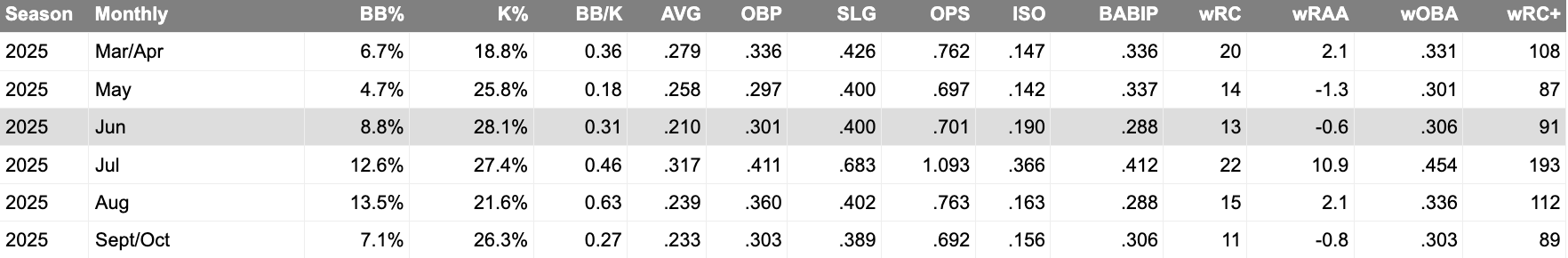 : One thing to remember is that perception isn’t performance. I wonder about Pham facing some pitchers who may have been, say, great in 2023-24 but were ordinary last year? Thinking of Spencer Strider, for one that we’ve already mentioned.