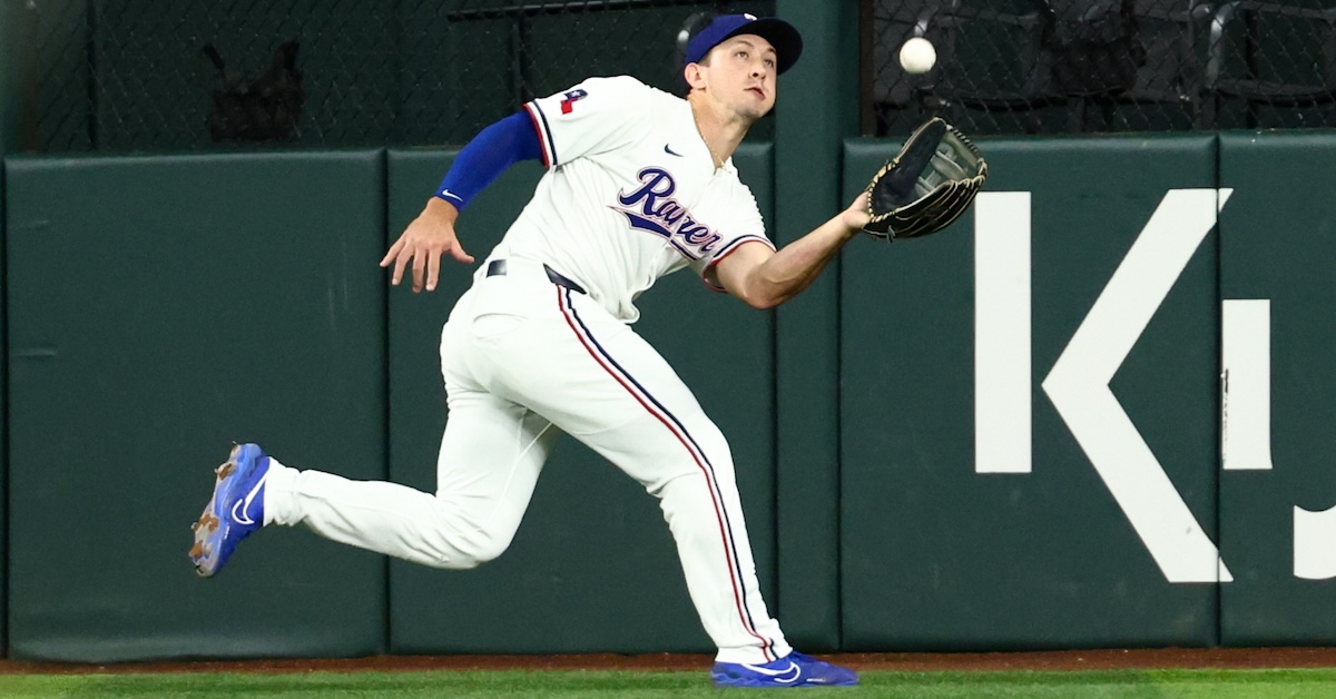 There are a number of considerations here. Nimmo, at this phase of his career, is almost certainly best in left field. His knees are jacked up; his arm is noodle-adjacent. Evan Carter nominally profiles as a center fielder, but injuries have kept him off the field for much of the last two seasons; it’s possible a corner could be the best way to ensure his availability. Langford’s known right field experience is limited to a single game for the 2022 Peninsula Pilots of the collegiate summer Coastal Plain League.