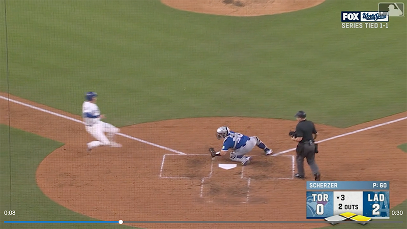 The Blue Jays sought to challenge the play on the grounds that Smith had blocked the plate before he’d caught the ball, when the runner was still somewhere around Barstow. Fox even brought on a former umpire as a rules expert to explain the blocking rule. “And then, would the runner be able to run over the catcher at that point?” asked John Smoltz, sounding like he’d finally found a part of the game that he truly enjoyed talking about.