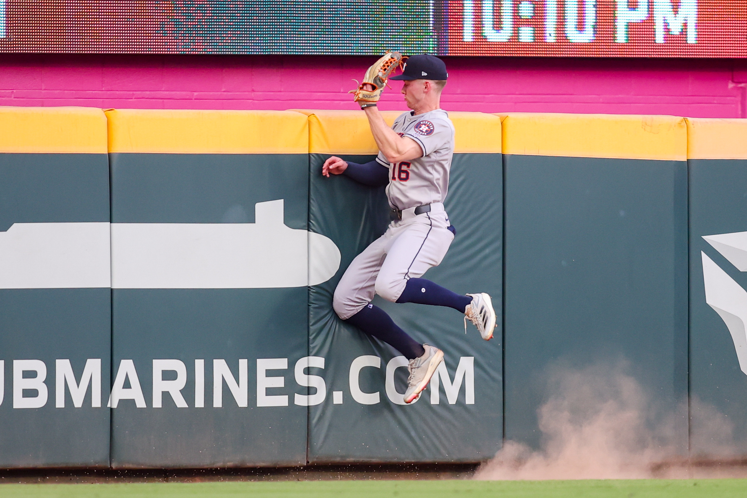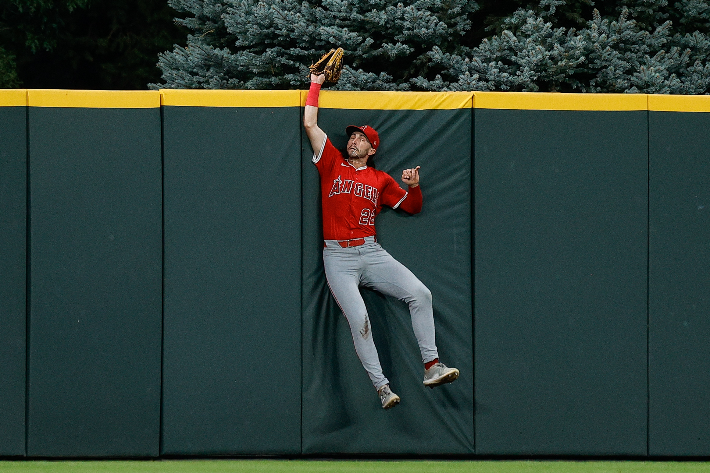 Luckily, the image service allows us to use pictures from actual talented photographers. These people take superlative action shots, and then we grab a convenient one for the top of each article. The system works, but it leaves so, so many cool pictures unused. Today, I’d like to highlight one category of pictures that is a particular favorite of mine: Outfielders smushing themselves into the wall as they try to make a leaping catch. As subgenres go, it’s a delight, and so we’re going to honor the best it has to offer.