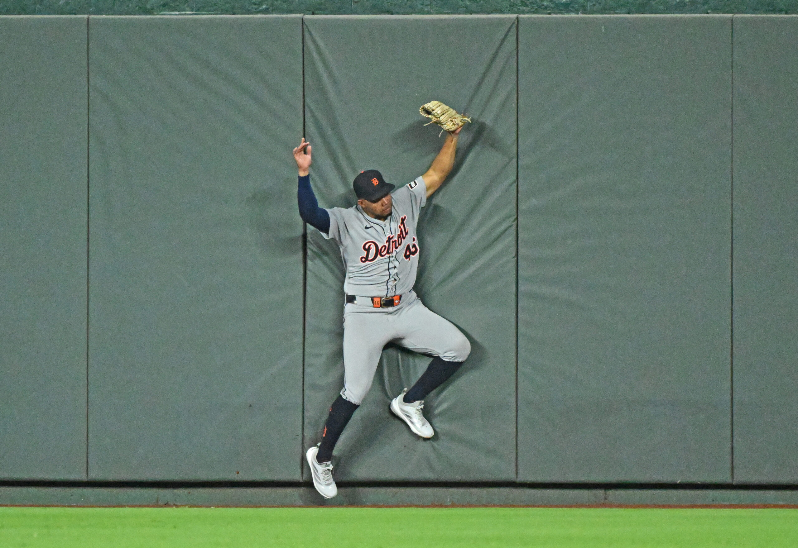 That’s Colton Cowser sacrificing his right shoulder to snag a fly ball off the bat of Harrison Bader in Philadelphia. This picture really has it all. The padding of the Sherwin Williams sign is buckling so ferociously that it looks like Cowser is landing on a trampoline rather than crashing into masonry. Unfortunately, you can see that he hit it on the hardest spot, right between the padding where the two panels meet, and he was shaken up after the play.