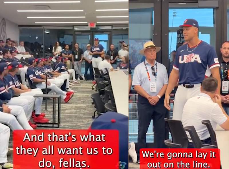 Get it now? Judge and his comrades-in-bats are going to lay bunts on the line. They’re going to safety squeeze and suicide squeeze. They’re going to give away outs like nobody’s business. Manager Mark DeRosa assembled a monster lineup of power hitting superstars as a colossal fake out. They’re going to small ball their way to… some sort of gold something. And even though Judge announced it in a speech, the world will never see it coming.